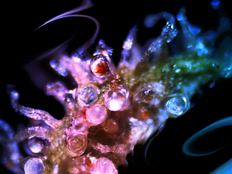 Dus kwam ik op het idee om zijn werk voor te zetten .Ik heb mooie, unieke foto's van THC-Druppels die zijn uitvergroot met een microscoop en geprojecteerd op plexiglas.